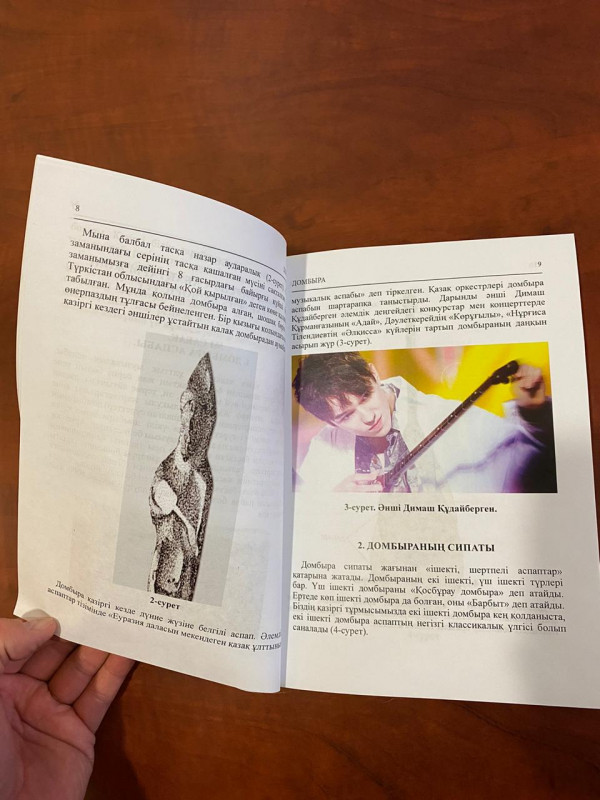 На первых страницах учебника можно встретить фотографию известного казахстанского певца Димаша Кудайбергена с домброй в руках.