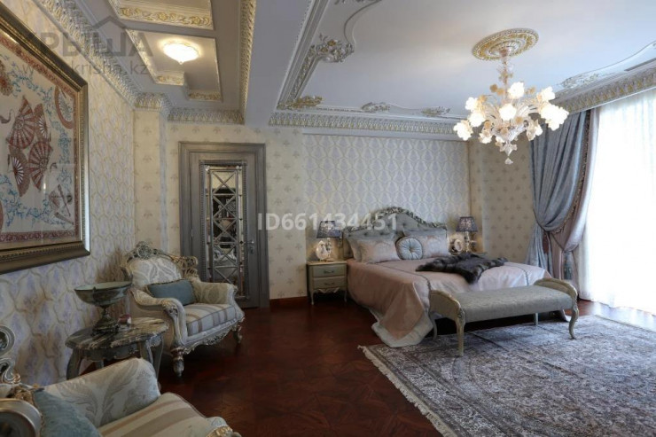 Отмечается, что в доме есть пять спален с санузлами и гардеробными, просторный зал, столовая зона, кабинет. Также имеется спа с бассейном и сауной. Стоимость - 1,319 миллиарда тенге.