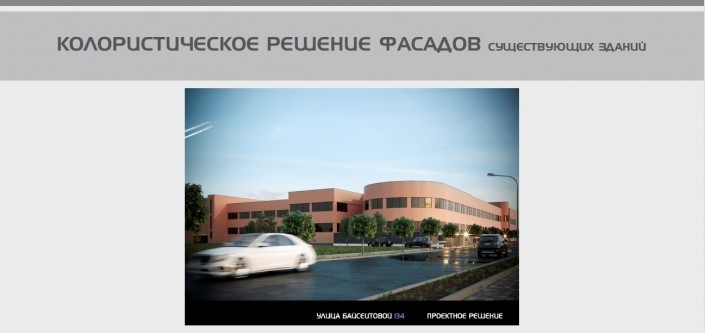 Проект преобразования жилищно-гражданских объектов улицы Байсеитовой (от улицы Кабанбай батыра до улицы Толе би). Участок - 500 метров. Площадь проектируемой территории - 3 гектара. Площадь благоустройства - 2,8 гектара. Площадь озеленения -1,5 гектара. Планируется высадить 368 деревьев.
