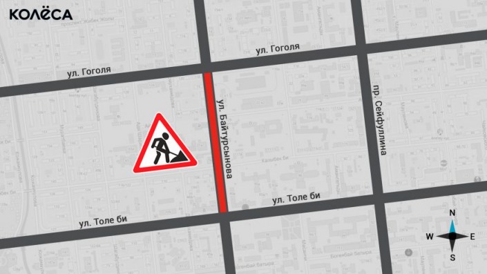 - улица Байтурсынова от улицы Толе би до улицы Гоголя;