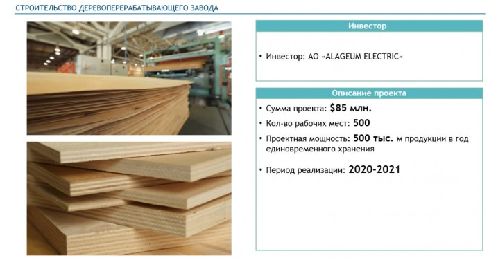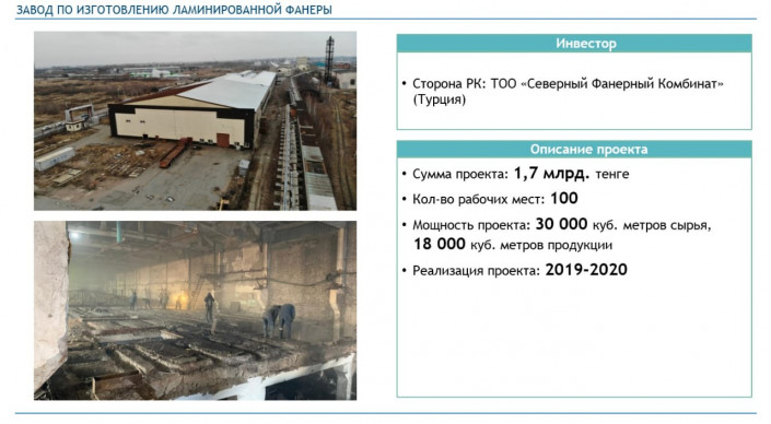 "Турецкие инвесторы запустят завод по изготовлению ламинированной фанеры. Новое предприятие расположится на базе бывшего трубного завода. Будет создано до 100 постоянных рабочих мест. Сейчас идет ремонт помещения, закуплено оборудование. Инвестор Alageum Electric откроет электротехнический завод по выпуску трансформаторов. Трудоустроятся 350 человек. Мощность предприятия - 12 тысяч трансформаторов год. В феврале 2020 года начнутся ремонтные работы в производственном помещении. Этот же инвестор в будущем году начнет строительство деревоперерабатывающего завода. Там будет создано до 500 новых рабочих мест", - написал глава региона.