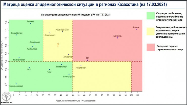 Сообщается, что в "красной" зоне по-прежнему находятся Нур-Султан, Алматы, Западно-Казахстанская область.