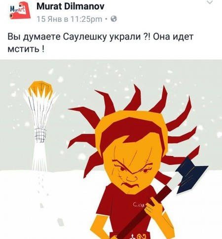 Особенно активно казахстанцы заговорили о маскотах, когда с водно-зеленого бульвара в Астане таинственно исчезла одна из фигур под названием Сауле. Позже выяснилось, что маскот забрали на реставрацию в связи с повреждениями, однако юмористов казнета было уже не остановить.