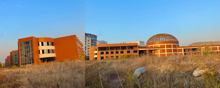Недостроенное здание Научно-исследовательского центра Казахстанского института нефти и газа. Октябрь, 2021 год. Фото ©Tengrinews.kz/Шокан Алхабаев