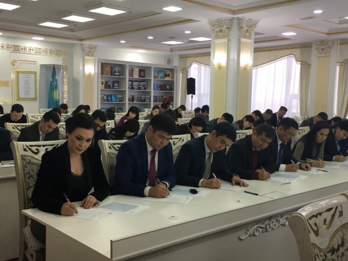 Диктант на тему "Рухани жаңғыру" был несложный и доступный для всех участников - от школьников до старшего поколения. Текст из 80 слов. Продолжительность диктанта - 30 минут.
