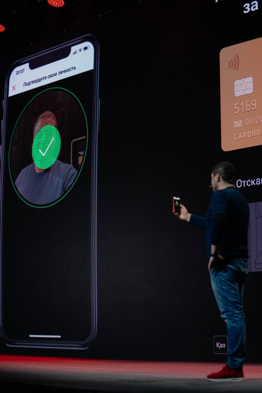 Прямо на сцене в присутствии сотен зрителей Михаил через приложение Kaspi.kz заказал себе именную карту. Свою личность он подтвердил с помощью Kaspi ID.