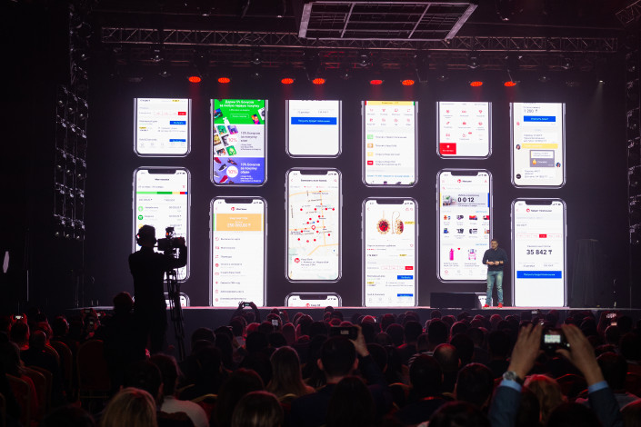 Разверзлась стена (на самом деле открылся занавес между двумя частями одного помещения), и люди стали перемещаться в часть зала возле сцены – под увлекающую музыку, между летающими красными, черными сферами, которые проецировались на стены. Так в четверг, 28 ноября, в Алматы во Дворце спорта начал презентацию новых продуктов и сервисов глава Kaspi.kz Михаил Ломтадзе, который поднялся на сцену в неизменных красных кроссовках.