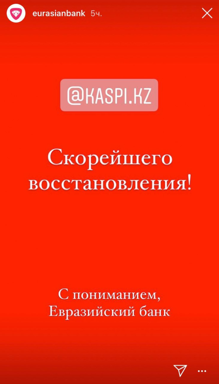 А Евразийский банк выразил понимание ситуации и тоже пожелал скорейшего восстановления систем.