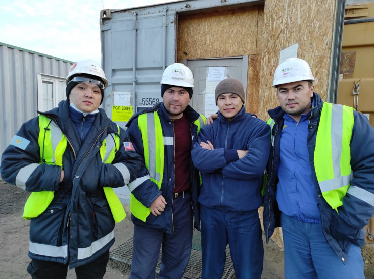Медет Утегенов (крайний справа) с коллегами по вахте на месторождении Тенгиз