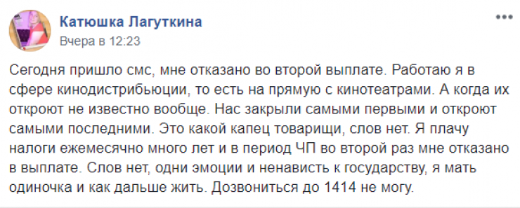 Некоторые люди сообщают, что потеряли доход на время карантина, испытывают трудности, но им отказывают в выплате.