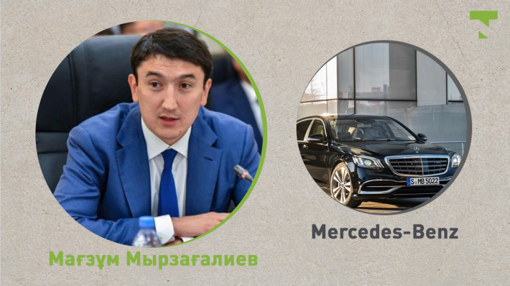 Энергетика министрі Мағзұм Мырзағалиев Mercedes-Benz көлігімен жүреді. Көліктің түсі - қара, 2017 жылы шығарылған.