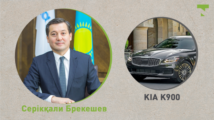Экология, геология және табиғи ресурстар министрлігінің басшысы Серікқали Брекешевтің көлігі - KIA K900. Түсі - қара, 2020 жылы шығарылған.