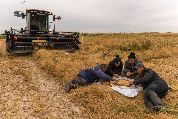Вот, например, работники на рисовом поле в Кызылординской области. В тот день на обед у них был свежий плов.