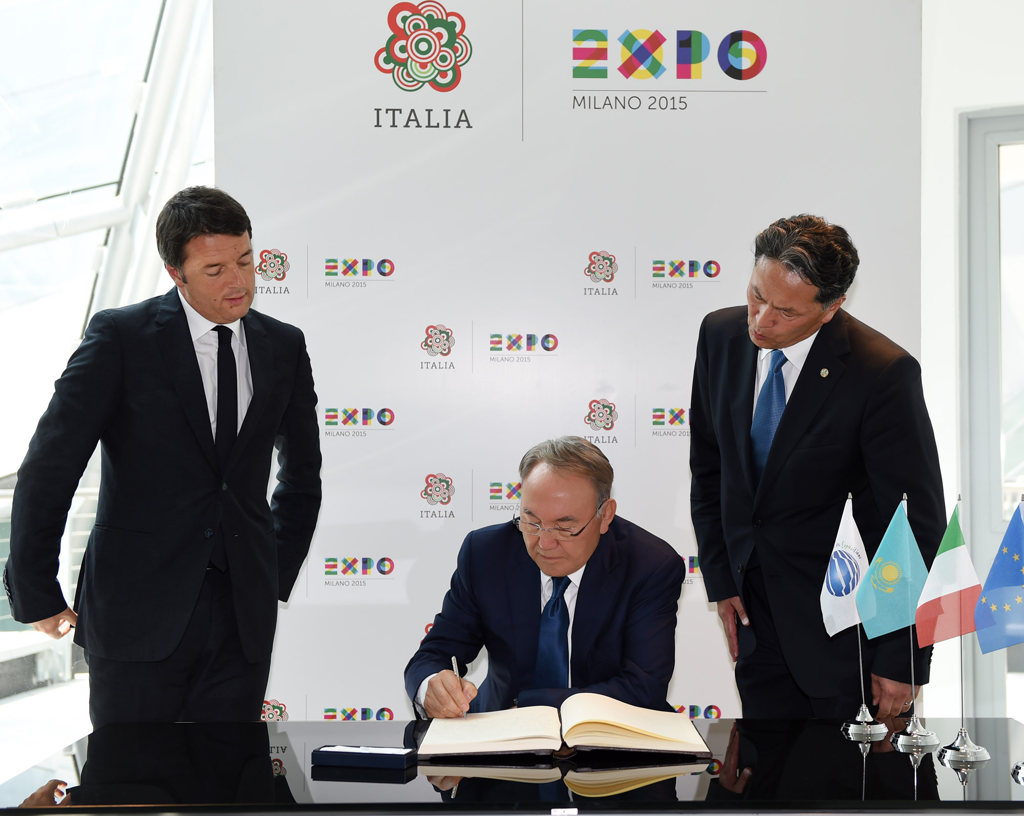 Запись в Книге почетных гостей итальянского павильона на международной выставке EXPO-2015 в Милане. © akorda.kz