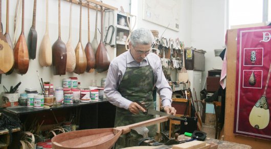 Мастер Жолаушы Турдыгулов раскрыл секрет, как правильно сделать домбру. Чтобы создать инструмент, нужно сушить материал для него по меньшей мере 60-70 лет, тогда домбра будет издавать отличный звук.