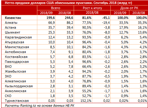 Непосредственно сентябрьский объем продаж - 199,6 миллиарда тенге, что на 18,4 процента меньше, чем в прошлом месяце.