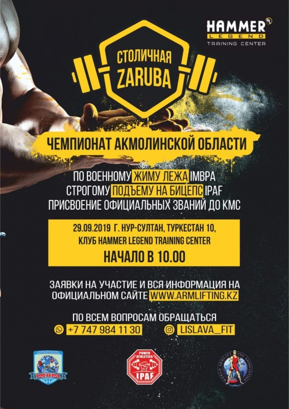 Впервые в столице 29 сентября состоится чемпионат Акмолинской области по военному жиму лежа и строгому подъему на бицепс, передает корреспондент Tengrinews.kz.