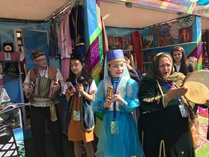 На сцене выступили звезды казахстанской эстрады. На площади перед Дворцом Республики установлены шатры с выставкой каждого культурного объединения, где продемонстрированы национальные костюмы, изделия декоративно-прикладного искусства и народного промысла, музыкальные инструменты. Выставка также включала в себя мастер-классы и интерактивы со зрителями.