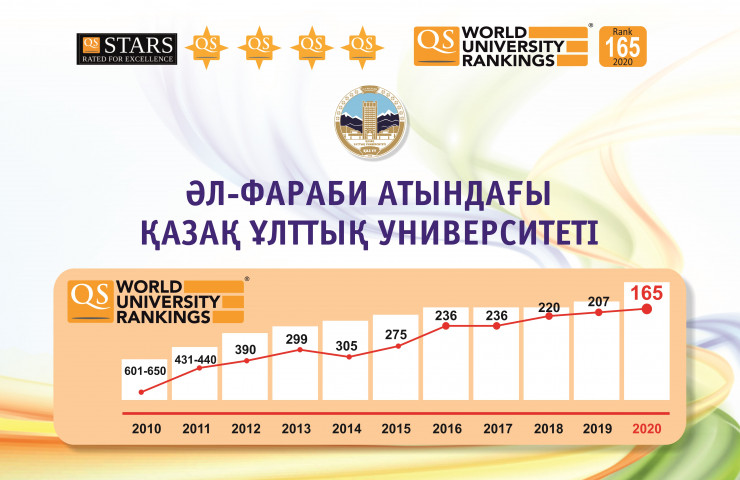 Известное и всемирно признанное рейтинговое агентство Quacquarelli Symonds (QS) опубликовало новые результаты исследования по высшим учебным заведениям мира. Как подчеркивается в аналитическом отчете QS, в этом году КазНУ имени аль-Фараби, поднявшись на 42 позиции, занял 165-е место в глобальном рейтинге и стал первым казахстанским вузом, вошедшим в топ-200 лучших университетов мира.