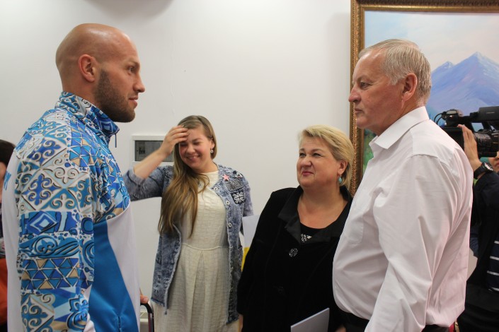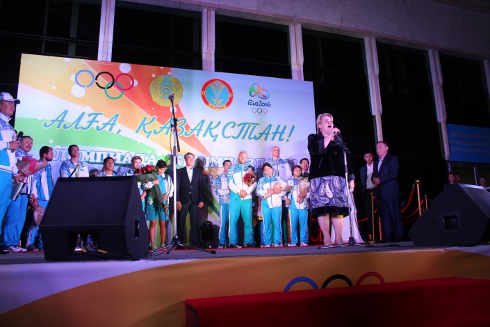 По ее словам, большие достижения Левита в спорте и на Играх-2016 в частности являются достижением не только родных спортсмена. "За каждым чемпионом, говорят, стоит сильная мама. Но ведь за ним стоит не только сильная мама, за ним стоят сильная команда тренерского штаба, Федерация бокса, лично аким города Астаны. Это тоже большая честь и поддержка. Дорогие наши дети, наши сыновья, вы сегодня - истинные победители, истинные олимпийцы. Мы любим вас, мы гордимся вами. Ну а всем болельщикам я хочу поклониться низко в ноги за поддержку и признание", - отметила Татьяна Левит и поклонилась в сторону зрителей, пришедших на торжественную встречу олимпийцев.