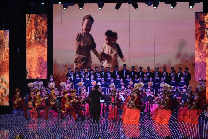 В завершение торжественного собрания состоялся праздничный концерт с участием заслуженного деятеля РК, известной певицы Алтынай Жорабаевой, вокального трио "Родина", творческих коллективов области под голографическое шоу.