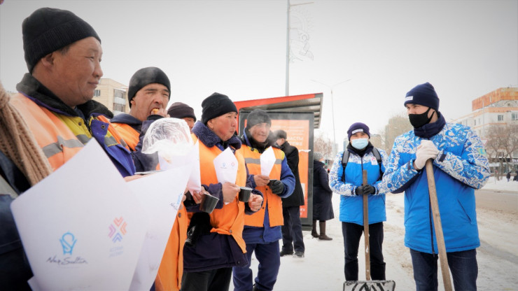 Коммунальщиков Нур-Султана угостили чаем и баурсаками