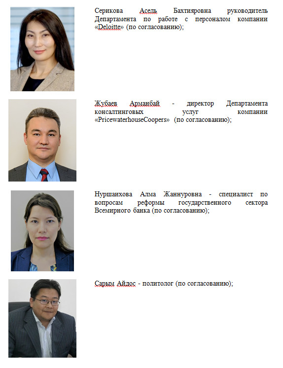 "В целях дальнейшего совершенствования казахстанской госслужбы в русле ведущих мировых трендов в сфере управления человеческими ресурсами членами совета стали представители компаний "Большой четверки": KPMG, Deloitte, PriceWaterhouseCoopers", - сообщил Жахин.