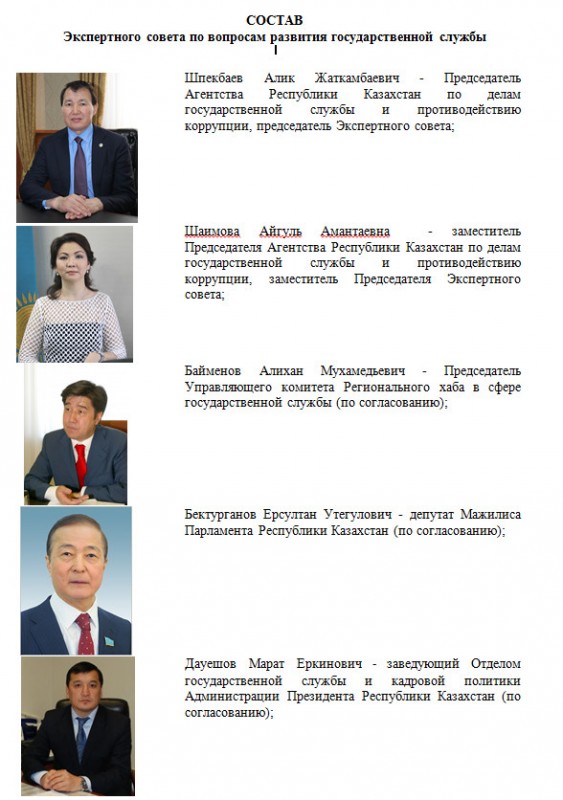 Как уточняется, образованный в агентстве новый консультативно-совещательный орган - Экспертный совет по вопросам развития государственной службы. В его состав вошли представители Всемирного банка, Ассоциации HR-менеджеров, госорганов, авторитетные ветераны госслужбы и известные специалисты в области госуправления.