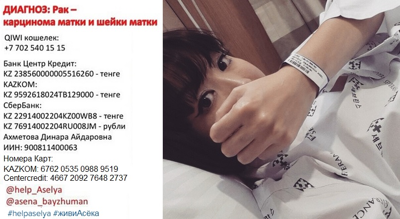 Известная казахстанская журналистка, работавшая на разных телеканалах, Асель Байжуман сейчас находится в больнице в Южной Корее. Врачи ей поставили диагноз - злокачественная опухоль, рак. Родные и близкие Асель помогают ей собрать необходимую сумму для проведения операции, лечения и химиотерапии.
