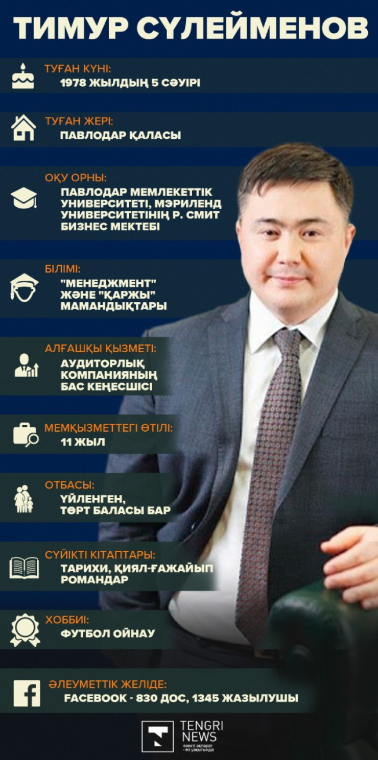 Кеше экс-министр Тимур Сүлейменов Президент Әкімшілігі жанынан құрылған институт басшысы болып тағайындалған еді. Сүлейменов енді Әлеуметтік-экономикалық реформаларды талдау және мониторингтеу орталығын басқарады. Tengrinews.kz тілшісі Тимур Сүлейменов туралы қызық деректерді жинап шықты.
