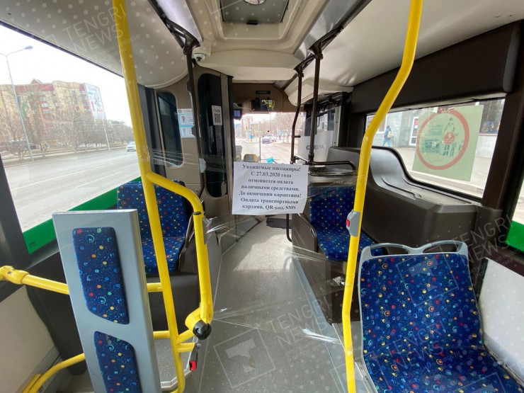 В Нур-Султане на карантин закрыли автобусный парк № 1, один из работников оказался контактным по коронавирусу. Близких контактирующих с сотрудником положили в стационар, а весь автобусный парк дезинфицировали. В остальных столичных автобусах сегодня запретили платить наличкой и перестали впускать людей через переднюю дверь. Выглядит это так: