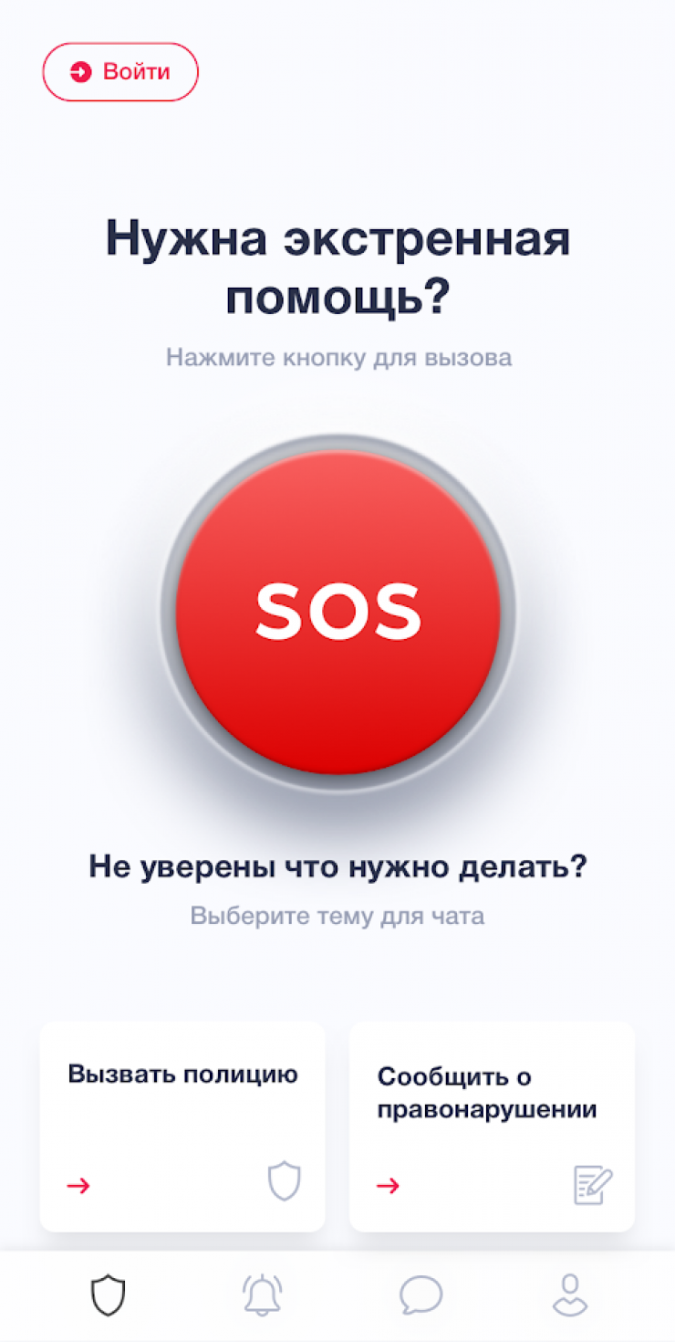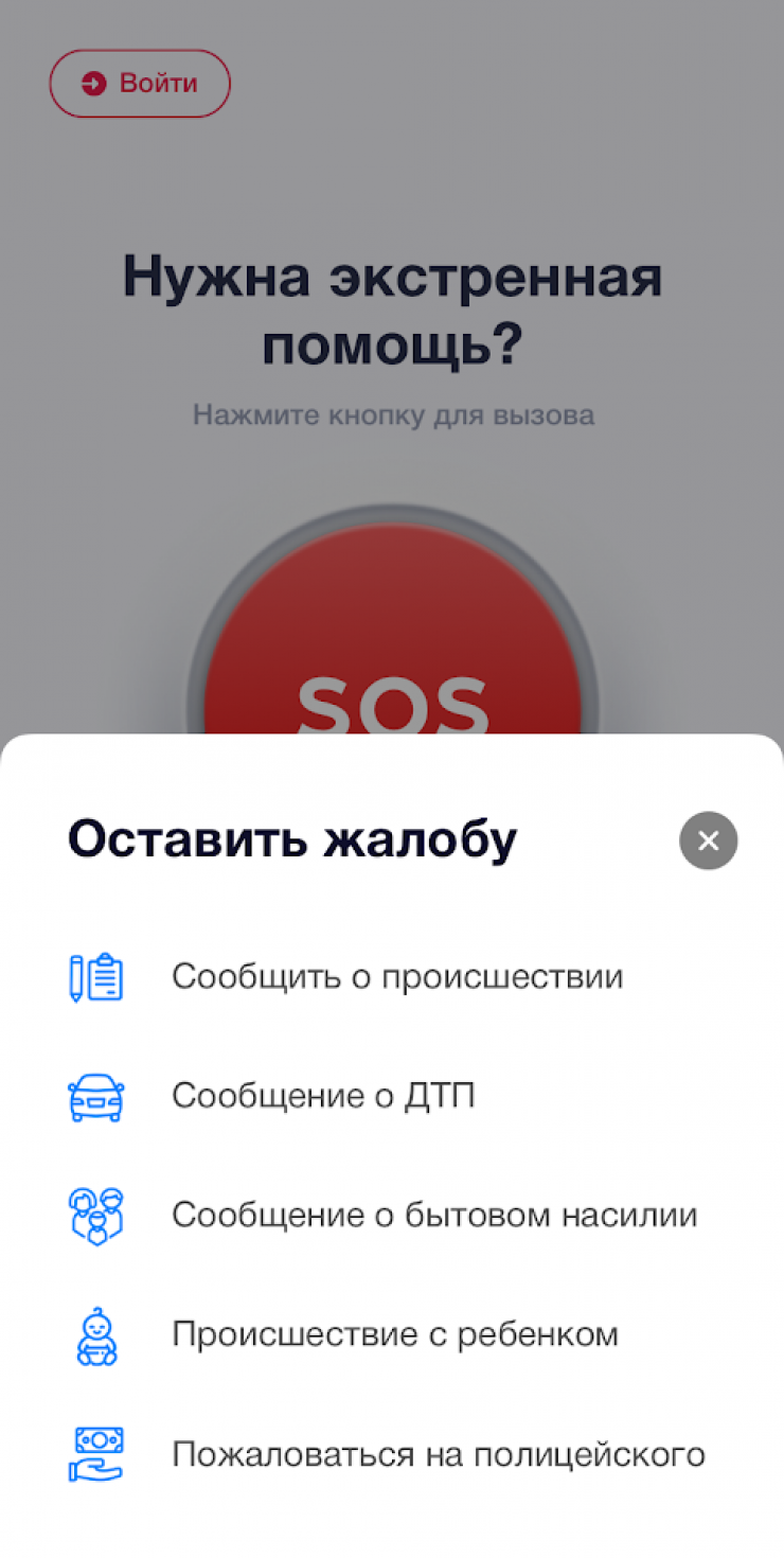 • связаться с оператором путем аудио- и видеозвонка, при этом автоматически определяется местоположение звонившего, оператор может видеть происходящее и принять экстренные меры реагирования;