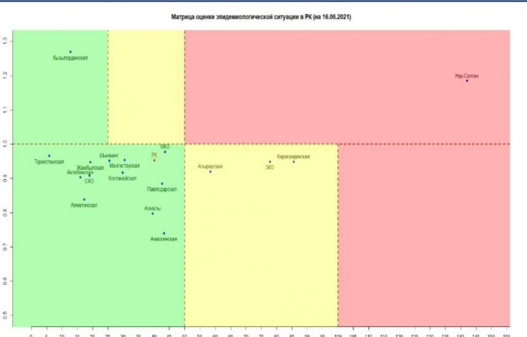 Согласно матрице оценки эпидемиологической ситуации в регионах Казахстана на 15 июня, в "красной" зоне остается Нур-Султан.