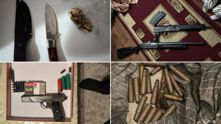В качестве вещественных доказательств у задержанных изъяты пистолеты Макарова и ТТ, четыре травматических пистолета, охолощенный автомат АК-103, самозарядное ружье МЦ 21-12, самозарядный карабин Сайга-410, двухствольное гладкоствольное ружье ТОЗ, а также 93 патрона различного калибра.