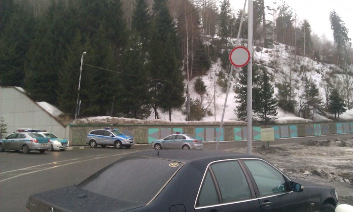 Сейчас близ нового знака на дороге, ведущей на плотину и далее на горнолыжный курорт, стоят полицейские авто. Сотрудники правоохранительных органов запрещают проезд частным автомобилям. Между тем, как удалось заметить, такси разрешено проезжать выше "Медеу".