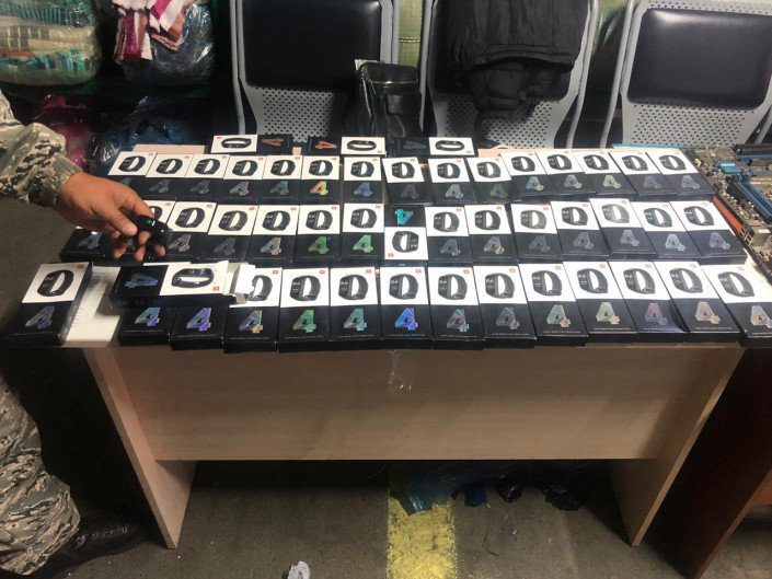 Среди изъятого 122 килограмма лекарственных препаратов китайского производства, 18 комплектующих для компьютеров и 48 фитнес-браслетов.