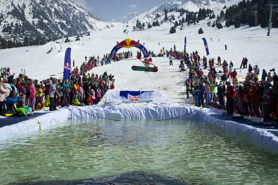 22 марта на горнолыжном курорте "Шымбулак" пройдет экстрим-контест - Red Bull Jump and Freeze. Название мероприятия не зря переводится как "Прыгни и замерзни", ведь его участники должны съехать на сноуборде/лыжах/чем угодно по заснеженной трассе, которая оканчивается большим бассейном с водой. Каждому участнику/команде дается только одна попытка, чтобы проявить себя, выполнить невероятный трюк и навсегда войти в историю со своим невероятным костюмом/конструкцией.