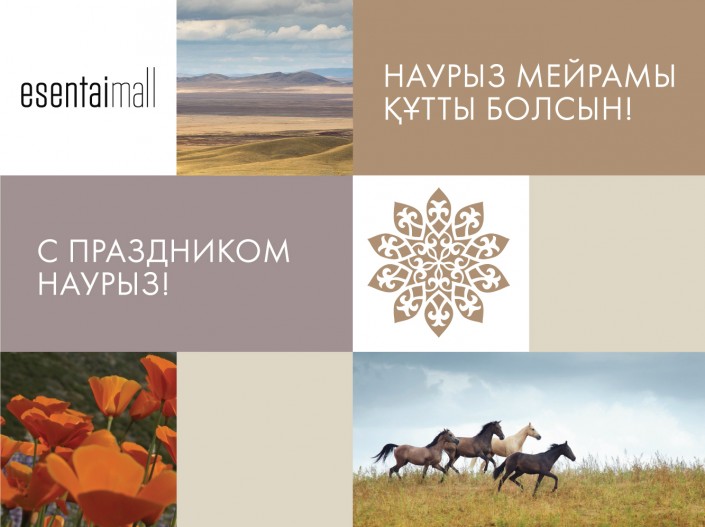 Празднование Наурыза пройдет и в Esentai Mall. На аллее Esentai Square с 18 по 23 марта пройдет праздничная ярмарка, на которой свою продукцию и блюда национальной кухни представят отечественные производители, также гостей ждет юрта, традиционные казахские качели Алтыбакан и возможность сфотографироваться с беркутом. Кроме этого, 22 марта на первом этаже молла с 12.00 до 17.00 пройдет праздничный концерт квартета национальных инструментов, а на втором этаже с 15.00 до 20.00 - мастер-класс "Текстильные тюльпаны".