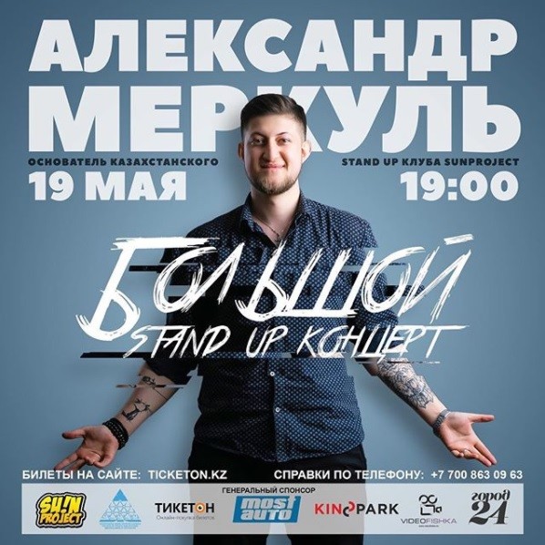 Первый большой сольный концерт от основателя самой успешной казахстанской Stand up команды SUNProject Александра Меркуля пройдет в оперном зале Дворца мира и согласия. Это новая веха истории юмора, когда независимый казахстанский комик собирает большой зал для того, чтобы поделиться своим лучшим материалом!