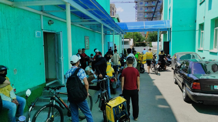 После этого доставщики поехали в головной офис, который расположен в бизнес-центре "Нурлы-Тау". По их словам, они имеют ряд претензий к руководству компании. Курьеры хотели поговорить об условиях подключения к платформе, оптимизации маршрутов, обсудить бонусы и доплаты, а также другие вопросы.
