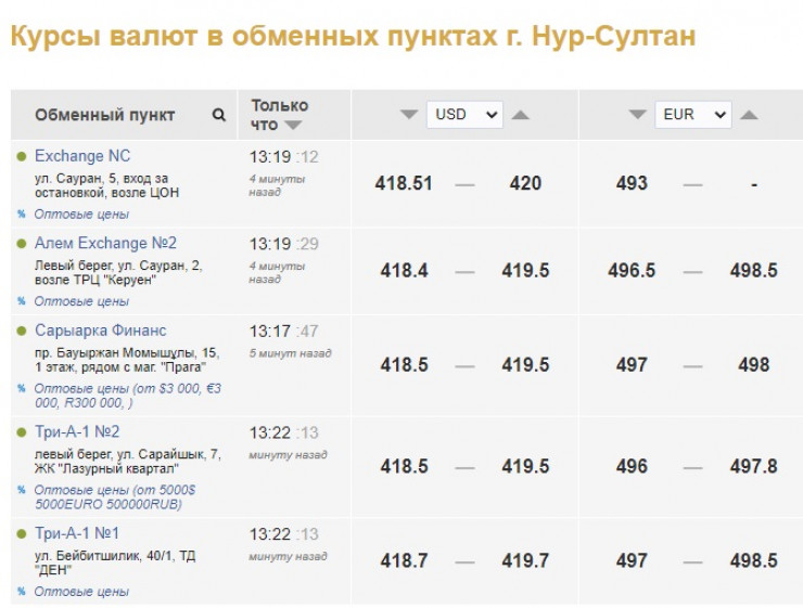 В Нур-Султане курс покупки евро составляет 497,8-501 тенге, продажи - 493-497 тенге.