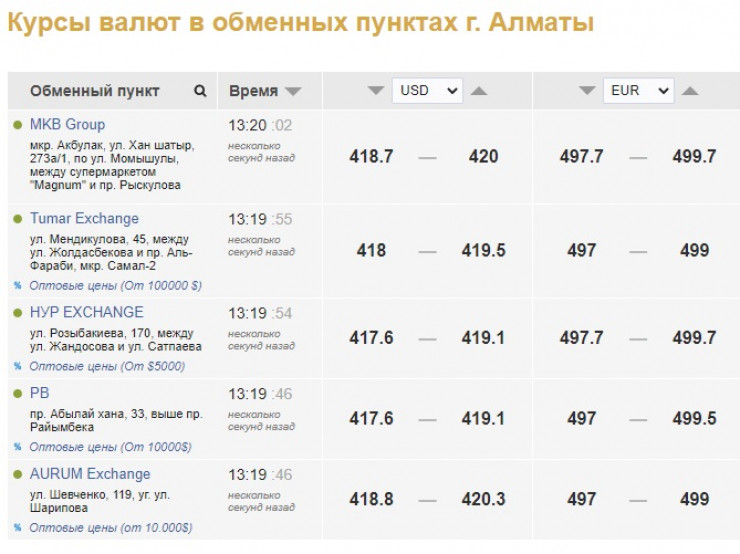 В обменниках Алматы евро продают 18 августа по 498,5-501 тенге, покупают по 494-498.
