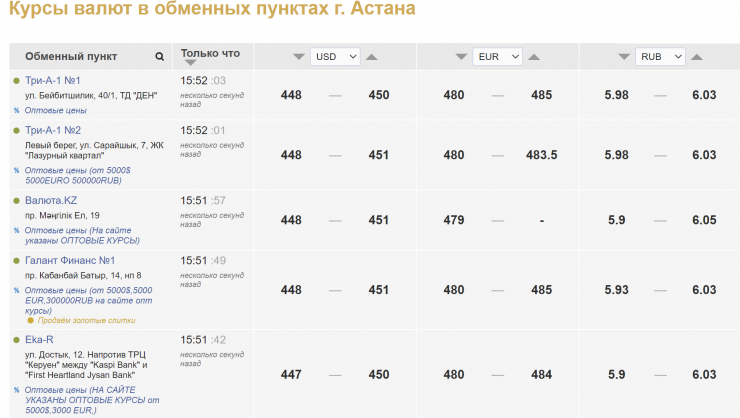 Таблица Kurs.kz