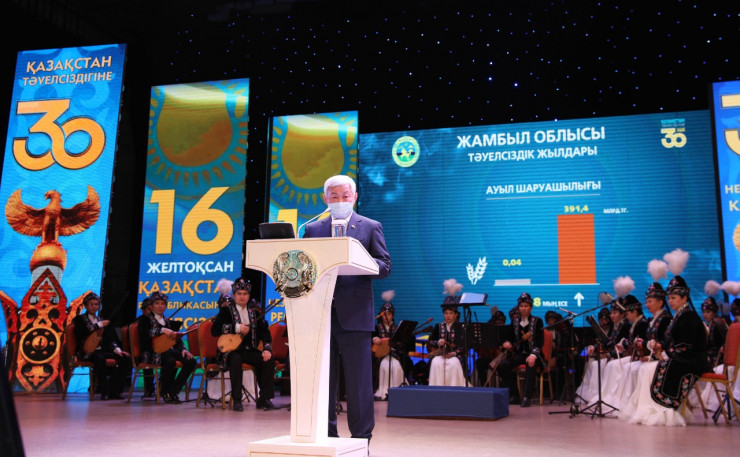 Аким Жамбылской области Бердибек Сапарбаев поздравил жителей региона с 30-летием независимости страны и остановился на достижениях области.