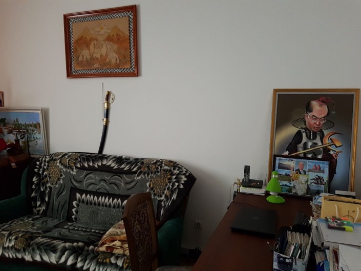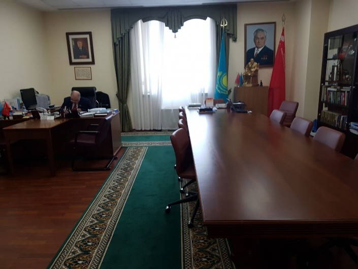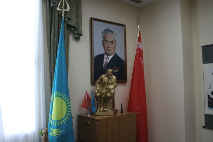 Возле окна два портрета: Нурсултана Назарбаева и Динмухамеда Кунаева.