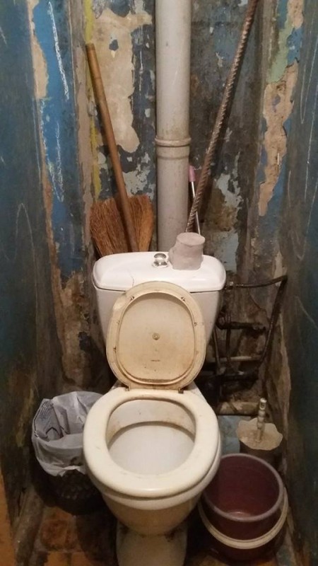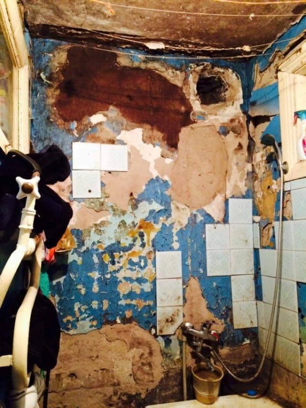 "Вот видите, все в плесени, все в сырости, краны и трубы все сгнили. Вся вонь идет, я уже четвертый раз покупаю краны, и они вот так на бок съезжают. Унитаз тоже весь течет, мы под трубы совок ставим, чтобы четвертый этаж не затопить", - делится с нами Елена.