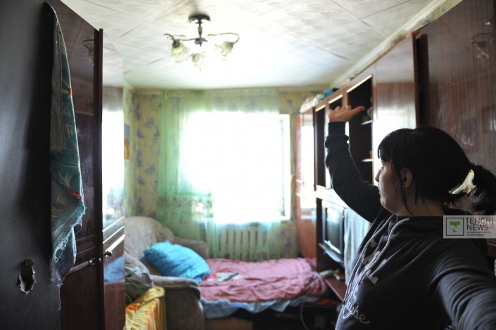 "Потом акимат дал приказ снять мансарду. Начали ее снимать, и вообще нас полностью затопило. Они нам дали бумагу, что, мол, мы вам восстановим все, но ничего не восстановили. А еще нам цементом залили отдушину, теперь она у нас не функционирует. Теперь к нам испарения с первых этажей поднимаются, кто-то покурит - у нас даже дым стоит и дети задыхаются. У меня ребенок с больным сердцем и ревматизмом ног, десять лет девочке", - говорит хозяйка квартиры.