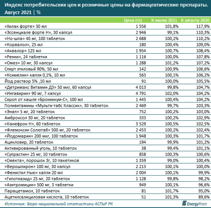 По итогам августа текущего года фармацевтические препараты подорожали на 0,3 процента за месяц и на 3,3 процента за год, передает Tengrinews.kz. Эксперты агентства Energyprom.kz связывают это со значительным ростом импорта медикаментов.