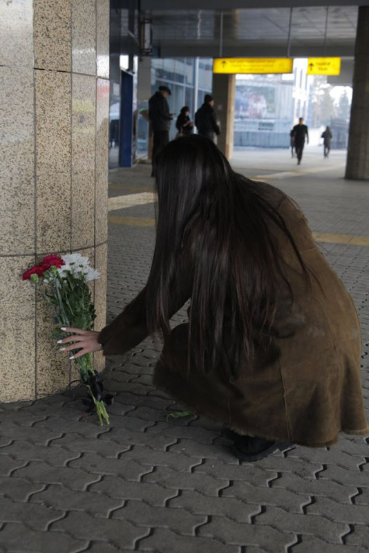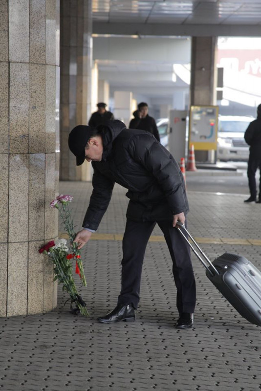"Алматинцы в знак скорби по погибшим пассажирам рейса Алматы - Нур-Султан авиакомпании Bek Air оставляют у главного входа в терминал цветы..." - говорится в сообщении на странице воздушной гавани в Facebook.