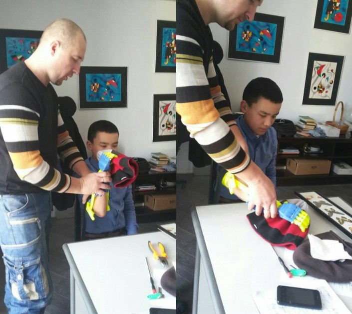 "Дело в том, что летом 2014 года у мальчика образовался маленький нарост на большом пальце правой руки. Родители обратились в больницу, где ранку вскрыли и начали физиолечение. Время шло, а назначенное лечение не помогало. Нарост достиг больших размеров. Его вскрыли повторно и стало ясно, что это злокачественная опухоль, но время было уже упущено и не оставалось ничего иного, как удалить кисть. Это было очень сильное потрясение для мальчика, с которым он жил до того, как молодая команда Creat3D Kazakhstan совершенно бесплатно сделала для него протез. Мальчик был невероятно счастлив своей новой руке. А мы очень рады тому, что будущее настало. Оно уже здесь. Это - наша настоящая жизнь, наш настоящий Казахстан, и наши настоящие люди. Которые меняют Мир", - написала Саин.